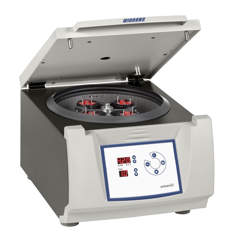 承載量可達:4 x100ml;離心力/ 轉速可達:2938xg / 4200RPM通用,緊湊,靈活和低噪音,是Unicen21 的設計理念。容量4×100 毫升, 可達4.200RPM/ 2.899xg,轉速和時間數字顯示。運行結束后機蓋自動打開。全自動的運行方式,節省操作程序。全新的安全操作系統:免維護無碳刷馬達;轉頭平衡自動檢測;全不銹鋼離心腔;機蓋自動鎖定。即使在少量樣品的情況下也可以理想的運行,這無疑是在緊急實驗時最適當的選擇,因為它減少了樣品制備時間。WIGGENS UNICEN21低速離心機使用方便*電腦程序控制*無刷免維護電機*轉子記憶功能*噪音水平,低于 60dB*有啟動、停止,開蓋和瞬時離心功能*運行過程中可以通過 RPM/RCF 進行速度調節。*自動開蓋功能*自動記憶末次參數設定值*超速保護WIGGENS UNICEN21低速離心機特點LED 顯示屏*顯示 RPM/RCF、時間*轉速控制,步進 50RPM/10xg*可以在到達設定值后,進行正計時或倒計時*定時從 1 ~ 99min,程序步進1min.可分步調節或暫停時間設置*加減速控制分三步:快速,中等,慣性*有聲音和屏幕信息提示,實時顯示設備的運行情況WIGGENS UNICEN21低速離心機安全*離心機蓋的安全系統* 自動機械鎖蓋* 緊急蓋解鎖功能* 運行過程中鎖蓋保護* 防止蓋突然下落保護* 蓋上有觀察孔,用于操作檢查* 未配平檢查,將自動停機* 離心室和外殼之間有安全保護層* 離心室為不銹鋼材質(易于清潔)* 蓋關閉時可拆卸轉子* 轉子和適配器都可高壓蒸汽滅菌,安裝方便* 強制內部空氣流動,可以減少溫度增加* 節能設置,帶有自動斷開選項設置*歐盟認證:2011/65/EU, 2012/19/EU, 2014/30/EU, 2014/35/EU, 98/79/EC.*執行標準:EN 61010-1, EN 61010-2-020, EN 61326-2-6, EN 61326-1.